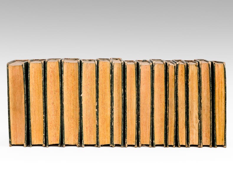 15 vol. in-12 reliure uniforme de l'époque demi-basane marron, dos lisse orné, Chez Giguet et Michaud, Chez Michaud, 1803, 1804, 1805, 1806, 1810