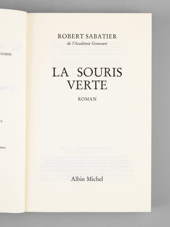 Bon état. Envois ms. de l'auteur à l'académicien Maurice Druon et à son épouse : "Pour Madame et pour Monsieur Druon, en respectueux et amical hommage.