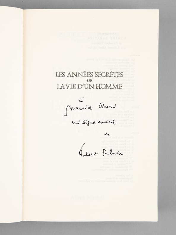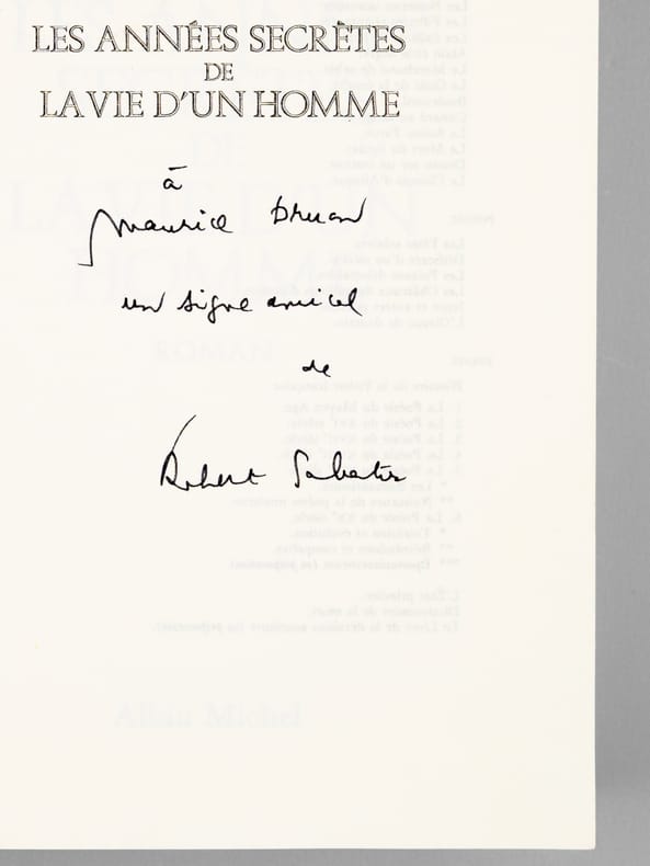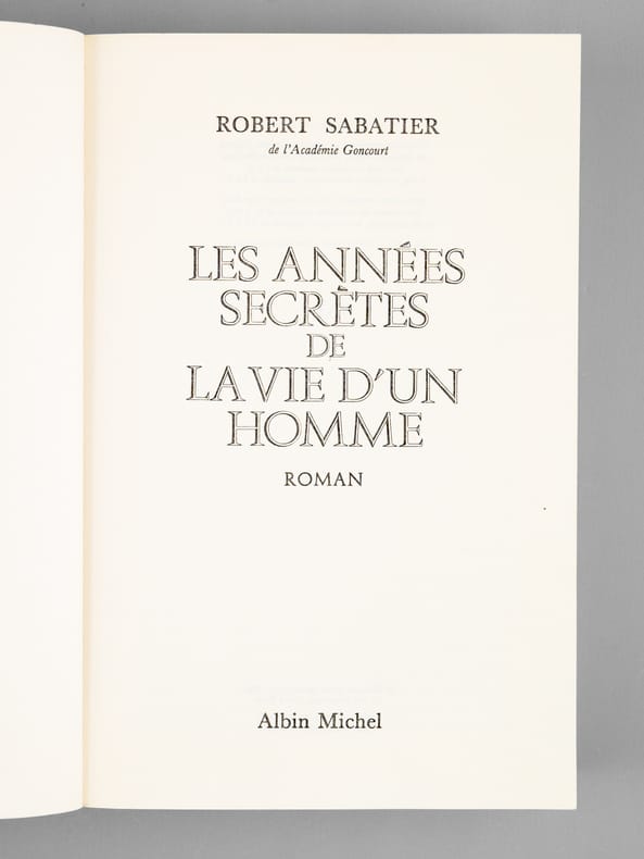 Envois ms. de l'auteur à l'académicien Maurice Druon : "A Maurice Druon, en signe amical de Robert Sabatier.". Etat très satisfaisant (lég. rouss. sur tr., bon état par ailleurs). Maurice Druon (1918-2009) , neveu de Joseph Kessel, fut résistant, écrivain auteur notamment de la saga historique des Rois maudits, et homme politique. Elu à l'Académie Française en 1968, il en devint le Secrétaire Perpétuel en 1985.