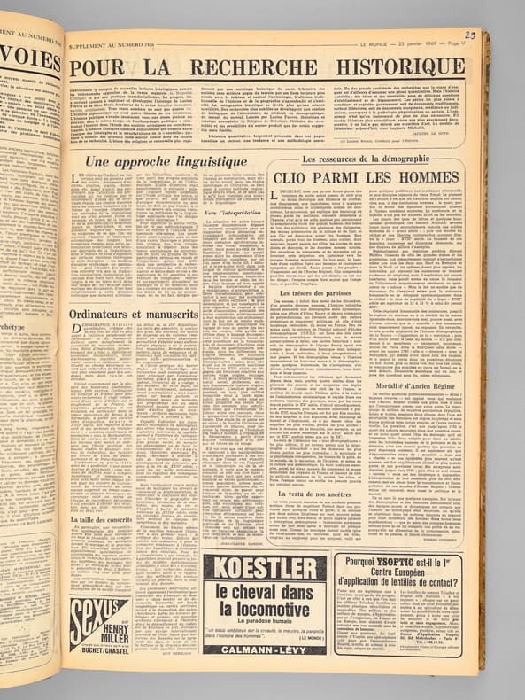 1 vol. in-folio reliure pleine toile grège, du numéro du 4 Janvier 1969, supplément au numéro du Monde n° 7458, au numéro du 27 décembre 1969, supplément au numéro 7762