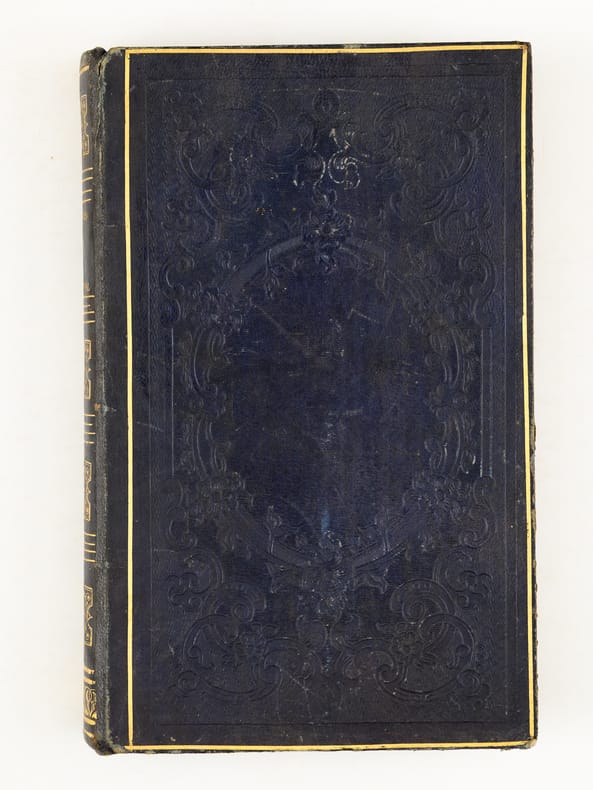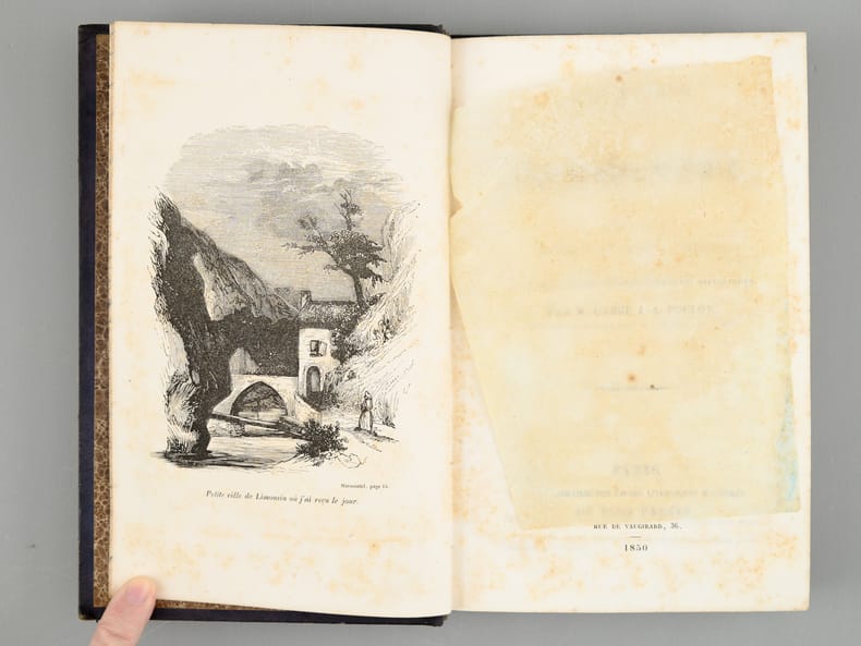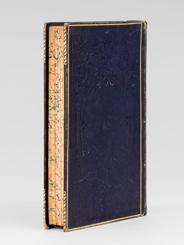 A la librairie des livres liturgiques illustrés de Plon Frères. 1850. In-8. Relié plein cuir. Etat d'usage, Coins frottés, Coiffe en pied abîmée, Quelques rousseurs. 434 pages - contre plats, gardes et tranches jaspés - coins frottés - coiffes légèrement abîmées - légères épidermures sur le 1er plat - blason collège municipal de Soissons doré sur le 1er plat - dos à 4 nerfs - filets dorés sur les nerfs - titre, filets et caissons dorés sur le dos.. . . . Classification Dewey : 848-Ecrits divers, citations, journaux intimes, souvenirs, mémoires