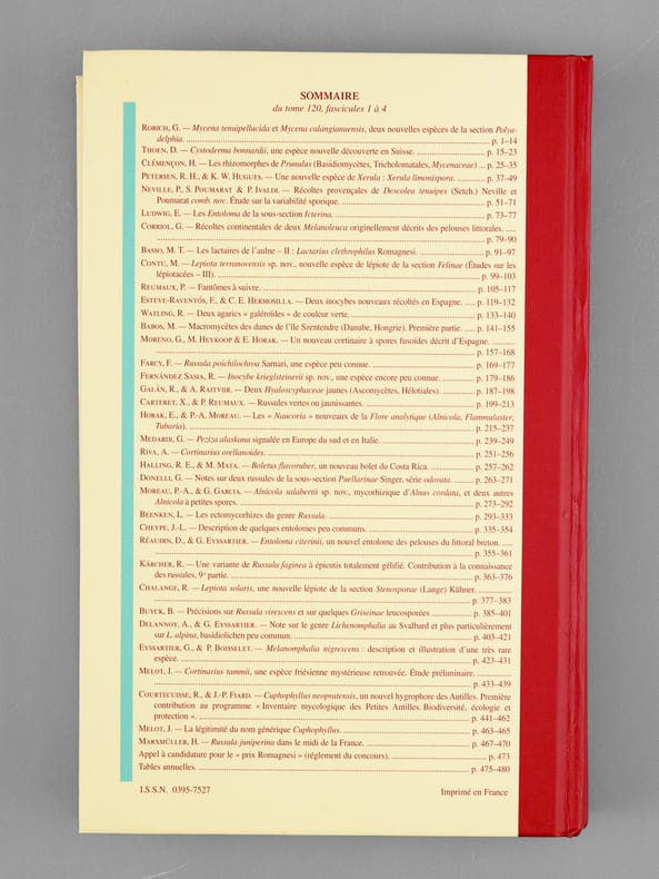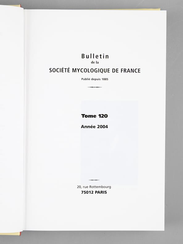 1 vol. in-8 cartonnage éditeur illustré, Bulletin de la Société Mycologique de France. Tome 120 Année 2004, 481 pp.