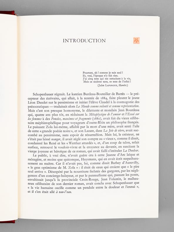 Texte présenté et commenté par Rose Fortassier, illustrations de Jean Marzelle, un des 5000 exemplaires sur papier d'édition de Rives numéroté, 1 vol. in-8 reliure pleine cuir rouge éditeur sous étui cartonné, tête dorée, coll. Lettres Françaises, collection de l'Imprimerie Nationale, Paris, 1981, 384 pp.