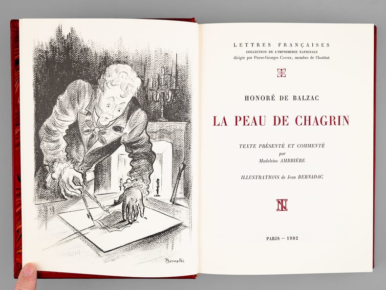 La peau de chagrin. Etudes sociales. (Paris: Houdaille et Cie, éditeurs (Paris, Imprimerie de Béthune et Plon), [1838]). [M.C.: Littérature, livre illustré]