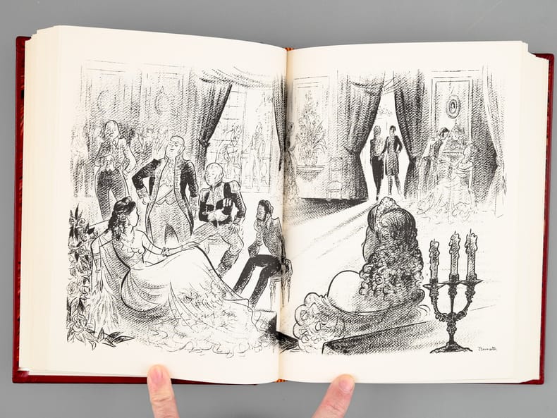 Texte présenté et commenté par Madeleine Ambrière, illustrations de Jean Bernadac, un des 5000 exemplaires sur papier d'édition de Rives numéroté, 1 vol. in-8 reliure pleine cuir rouge éditeur, dos à 4 nerfs dorés, tête dorée, coll. Lettres Françaises, collection de l'Imprimerie Nationale, Paris, 1982, 422 pp.
