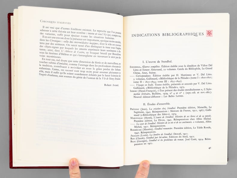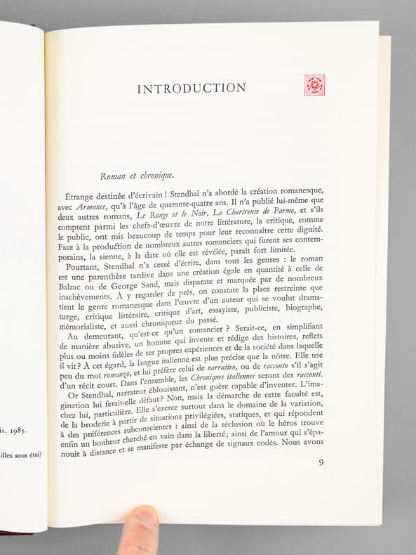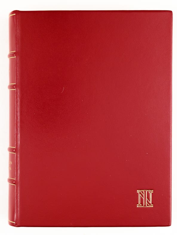 Paris, Imprimerie Nationale 1986, 225x165mm, 387pages, reliure chagrin rouge. Titre, auteur et filets dorés au dos à nerfs. Monogramme IN doré sur le plat supérieur. Tranche supérieure dorée. Exemplaire sur papier d’édition de Rives, ving-cinq pour cent chiffon, numéroté n.° 691 / 5000. Très bel exemplaire.