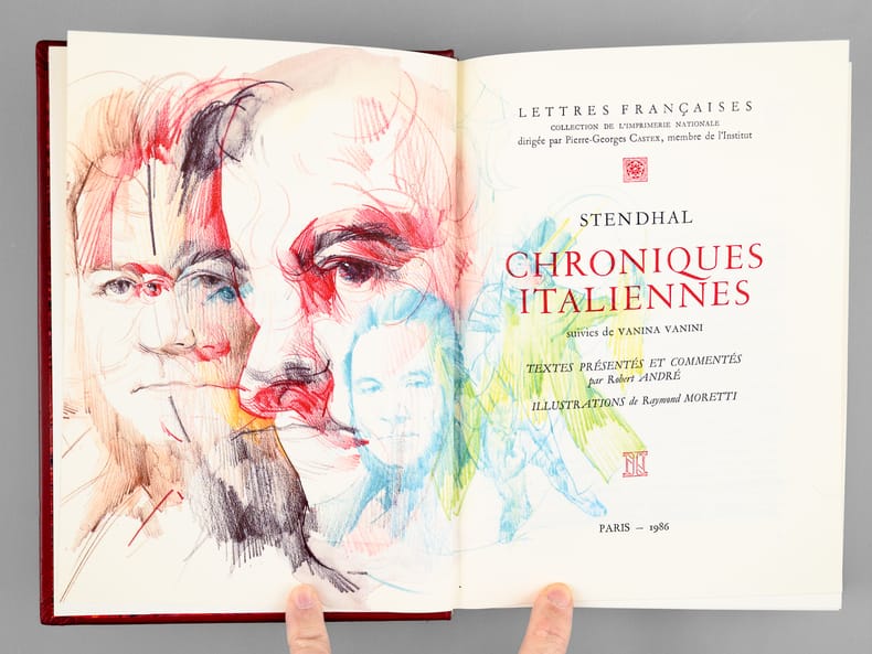 Textes présentés et commentés par Robert André, illustrations de Raymond Moretti, un des 5000 exemplaires sur papier d'édition de Rives numéroté, 1 vol. in-8 reliure pleine cuir rouge éditeur, dos à 4 nerfs dorés, tête dorée, coll. Lettres Françaises, collection de l'Imprimerie Nationale, Imprimerie Nationale, Paris, 1986, 387 pp.