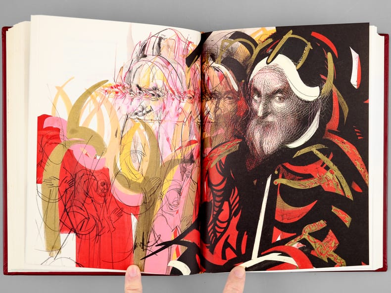 Paris Imprimerie Nationale 1986 in 8 carré (22,5x17) 1 volume reliure plein cuir rouge de l'éditeur, dos à 4 nerfs, tête dorée, 388 pages [3]. Textes présentés et commentés par Robert André. Avec de nombreuses illustrations de Raymond Moretti, dont hors-texte en couleurs sur double page. Collection '' Lettres Françaises''. Tirage limité à 5000 exemplaires numérotés, celui-ci un des 4880 exemplaires imprimés sur papier d'édition de Rives, vingt cinq pour cent chiffon et reliés plein cuir. Bel exemplaire ( Photographies sur demande / We can send pictures of this book on simple request )