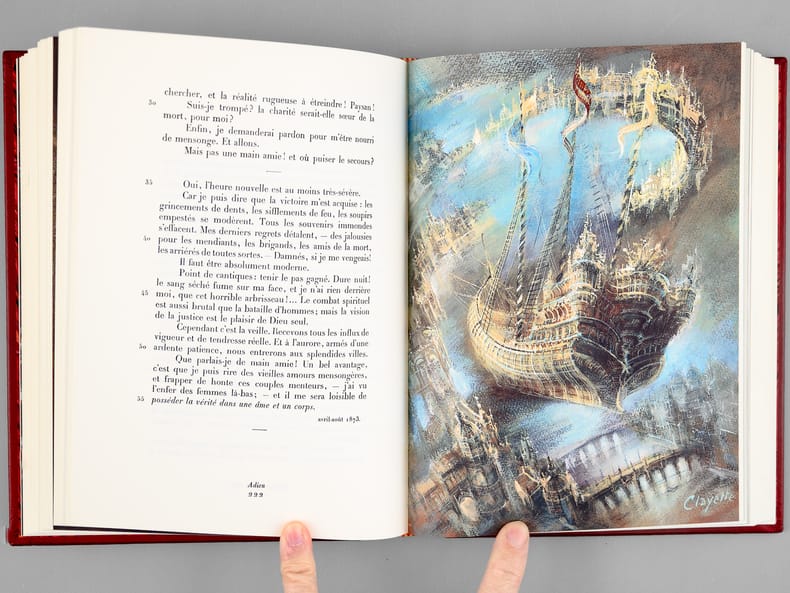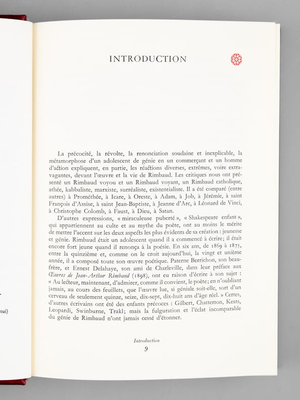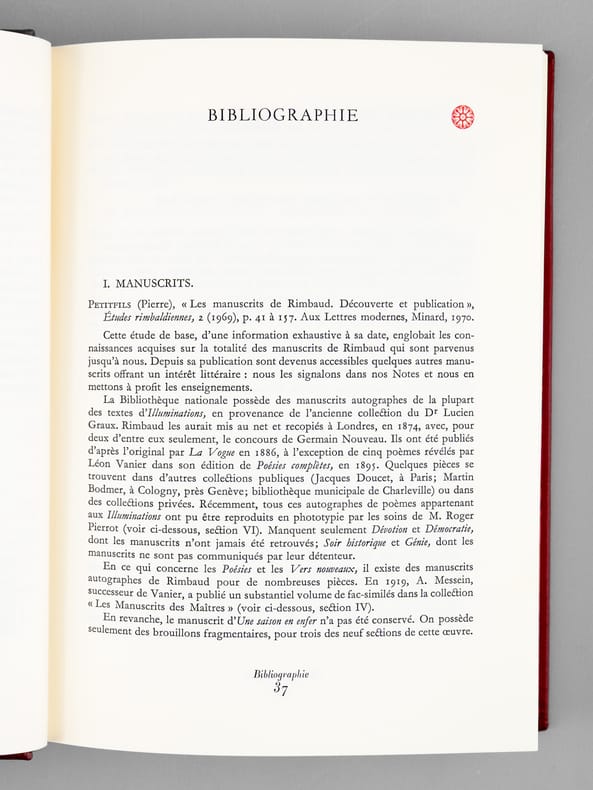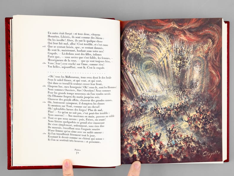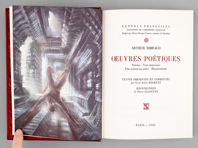 Paris Imprimerie Nationale, coll. "Lettres Françaises" 1986 1 vol. Relié gr. in-8, basane rouge éditeur, dos à nerfs, tête dorée, 424 pp., frontispice et 10 compositions en couleurs par Pierre Clayette et nombreuses planches hors-texte de reproductions. Tirage limité sur vélin de Rives. En excellente condition.