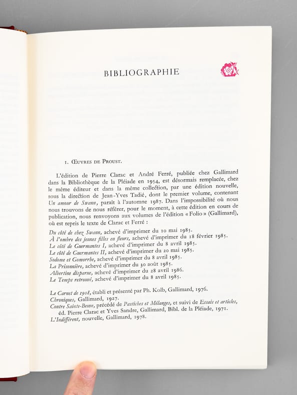 1987 Editions Gallimard / NRF, collection "Bibliothèque de la Pléiade" - 1987 - In-12, reliure pleine peau de l'éditeur, dos lisse orné de titres et filets horizontaux dorés, tranche de tête orangée, deux signets jaunes, sous rhodoïd, dans un emboîtage l'éditeur - CLXXVII-1547 pages sur papier Bible
