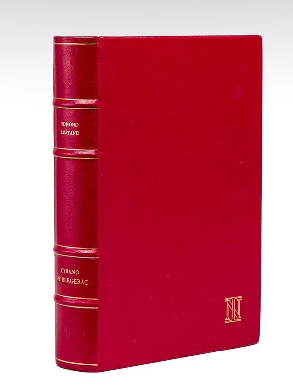Paris, 1898. 8vo. Contemporary half calf with five raised bands, gilt spine. Single gilt lines to boards. Capitals and corners worn. Inner hinges a bit weak. With Eugen Zabel's book plate to inside of front board, a postcard depicting Edmond Rostand's residense at Cambo, obviously posttamped on verso, pasted on to front free end-paper, contemporary newspaper-clipping about the numerous performances of ""Cyrano von Bergerac"" around the world pasted in to hinge of fly-leaf, where the presentation-inscription (for Eugène Zabel) is written, and finally, the original handwritten address in Rostand's hand, cut out from the envelope in which the book was sent to Zabel, is pased into hinge of half-title. Internally nice and clean.