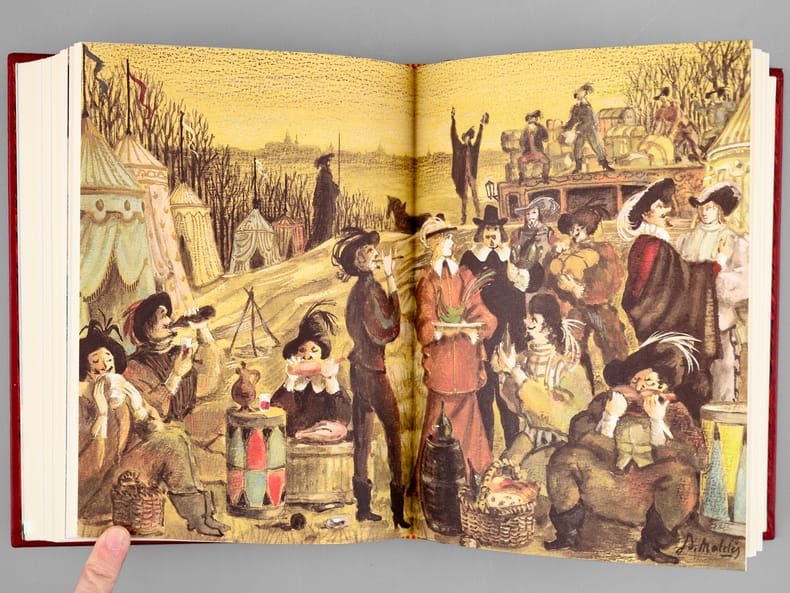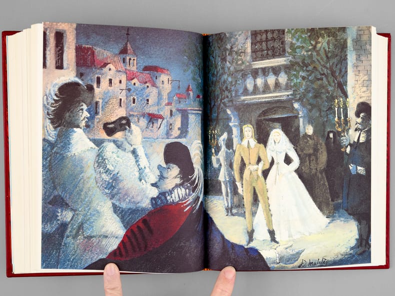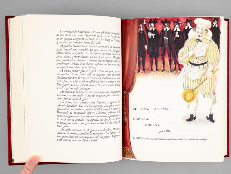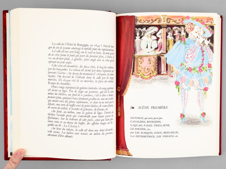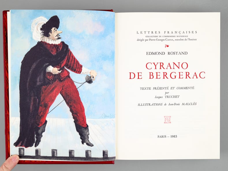 Texte présenté et commenté par Jacques Truchet, illustrations de Jean-Denis Malclès, un des 4150 exemplaires sur papier d'édition de Rives numérotés, 1 vol. in-8 reliure pleine cuir rouge éditeur, dos à 4 nerfs dorés, tête dorée, coll. Lettres Françaises, collection de l'Imprimerie Nationale, Imprimerie Nationale, Paris, 1983, 417 pp.