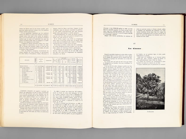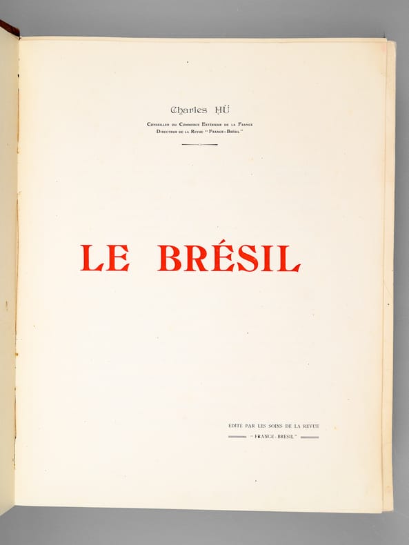 Par Charles Hü, Conseiller du Commerce Extérieur de la France, Directeur de la Revue "France-Brésil", 1 vol. grand in-4 cartonnage éditeur estampé à froid, Edité par les soins de la Revue "France-Brésil", Imprimerie Artistique, Bordeaux, s.d. [ circa 1908-1910], 636 pp. avec 2 panoramas dépliants