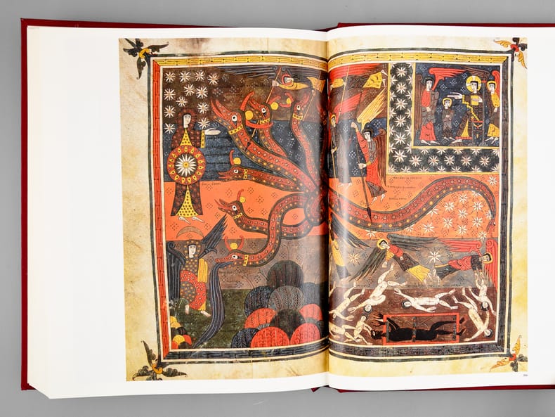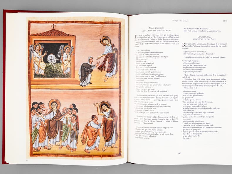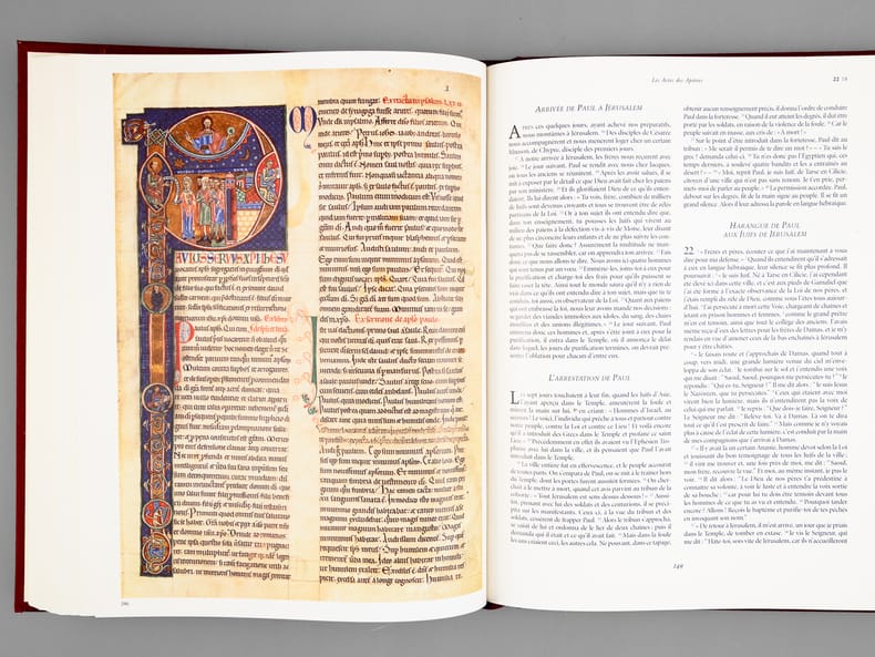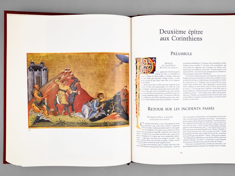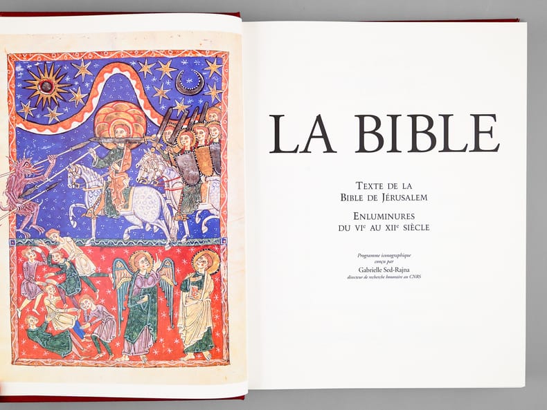 Le texte est celui de l'Ecole biblique de Jérusalem, les illustrations de cette magnifique édition réunissent les plus belles enluminures inspirées des Ecritures, du VIe au XIIe siècle. Bon état (qq. très petits frott. en dos, très bon état par ailleurs)