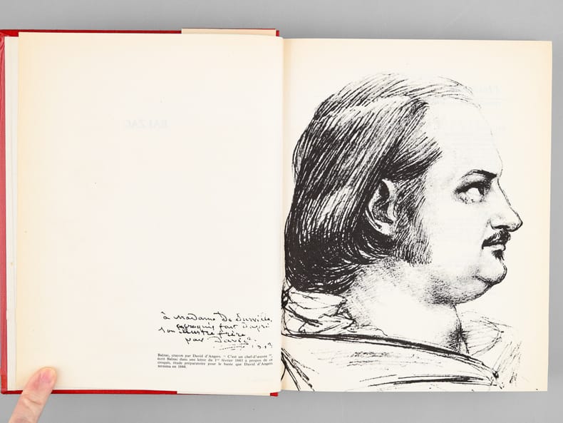 Un des 50 exemplaires sur papier ancien du Japon numérotés de 51 à 100 et paraphés par l'éditeur (n° 95), auquel on a joint dans chaque volume la suite des bois tirée sur papier de chine, texte revisé et annoté par Marcel Bouteron et Henri Longnon, gravés sur bois par Pierre Gusman, 40 vol. in-8 carré reliure de l'époque pleine basane marron, dos 4 nerfs dorés, têtes dorées, couvertures et dos conservés, Louis Conard, Paris, 1912-1940. Titre complet : Oeuvres complètes de Honoré de Balzac (40 Tomes : Complet) [ Exemplaire sur papier du Japon avec suite sur Chine ] [ Contient : ] La Comédie Humaine (33 Volumes) Etudes de Moeurs, Scènes de la Vie Privée. I : La Maison du chat-qui-pelote. Le Bal de Sceaux. Mémoires de deux jeunes mariés La Bours ; II : Modeste Mignon. Un début dans la Vie ; III : Albert Savarus. La Vendetta. Une Double Famille. La Paix du Ménage. Madame Firmiani. Etude de Femme ; IV : La fausse maîtresse. Une Fille d'Eve. Le message. La Grenadière. La femme abandonnée. Honorine ; V : Béatrix. Gobseck ; VI : La femme de trente ans. Le père Goriot ; VII : Le colonel Chabert. La messe de l'athée. L'interdiction. Le contrat de mariage. Autre Etude de femme ; Etudes de moeurs. Scènes de la Vie de Province VIII : Ursule Mirouët. Eugénie Grandet ; IX : Les Célibataires. Pierrette. le Curé de Tours. La Rabouilleuse ; X : L'Illustre Gaudissart. La muse du département. La Vieille Fille ; XI : Le Cabinet des Antiques. Illusions perdues : Les Deux poëtes ; XII : Illusions perdues : Un grand homme de Province à Paris. Les Souffrances de l'Inventeur ; XIII : Scènes de la Vie Parisienne : Histoire des Treize. Ferragus. La Duchesse de Langeais. La fille aux yeux d'or ; XIV : Grandeur et décadence de César Birotteau. La maison Nuncingen ; XV : Splendeurs et misères des courtisanes I ; XVI : Splendeurs et misères des courtisanes II Les secrets de la Princesse de Cardigan. Facino Cane. Sarrasine. Pierre Grassou ; XVII : La Cousine Bette ; XVIII : Le Cousin Pons. Un prince de la Bohême. Un homme d'affaires ; XIX : Gaudissart II. Les comédiens sans le savoir ; XX : Les petits bourgeois. L'envers de l'histoire contemporaine ; XXI : Scènes de la vie politique. Un Episode sous la Terreur. Une ténébreuse affaire. Le député d'Arcis. Z. Marcas ; XXII : Scènes de la Vie Militaire : Les Chouans. Une Passions dans le Désert ; XXIII : Scènes de la Vie de Campagne : Les Paysans ; XXIV : Le médecin de campagne ; XXV : Le curé de village ; XXVI : Le Lys dans la vallée ; XXVII : Etudes philosophiques : La peau de chagrin. Jésus-Christ en Flandre. Melmoth réconcilié. Massimila Doni ; XXVIII : Le chef-d'oeuvre inconnu. Gambara. La recherche de l'absolu. L'enfant maudit ; XXIX : Adieu. Les Marana. Le réquisitionnaire. El Verdugo. Un drame au bord de la mer. Maître Cornélius. L'auberge rouge ; XXX : Sur Catherine de Medicis. L'élixir de longue vie ; XXXI : Les proscrits. Louis Lambert. Séraphita ; XXXII : Etudes analytiques : Physiologie du mariage ou méditation de philosophie éclectique sur le bonheur et le malheur conjugal ; XXXIII : Petites misères de la vie conjugale ; XXXIV : Théâtre I : Vautrin. Les ressources de Quinola. Paméla Giraud ; XXXV : Théâtre II : La Marâtre. Le faiseur. L'Ecole des Ménages ; XXXVI : Contes drôlatiques I : Premier et deuxième dixain ; XXXVII : Contes drôlatiques II : Troisième dixain. Fragments inédits ; XXXVIII : Oeuvres diverses I : 1824-1830 ; XXXIX : Oeuvres diverses II : 1830-1835 ; Oeuvres diverses III : 1836-1848