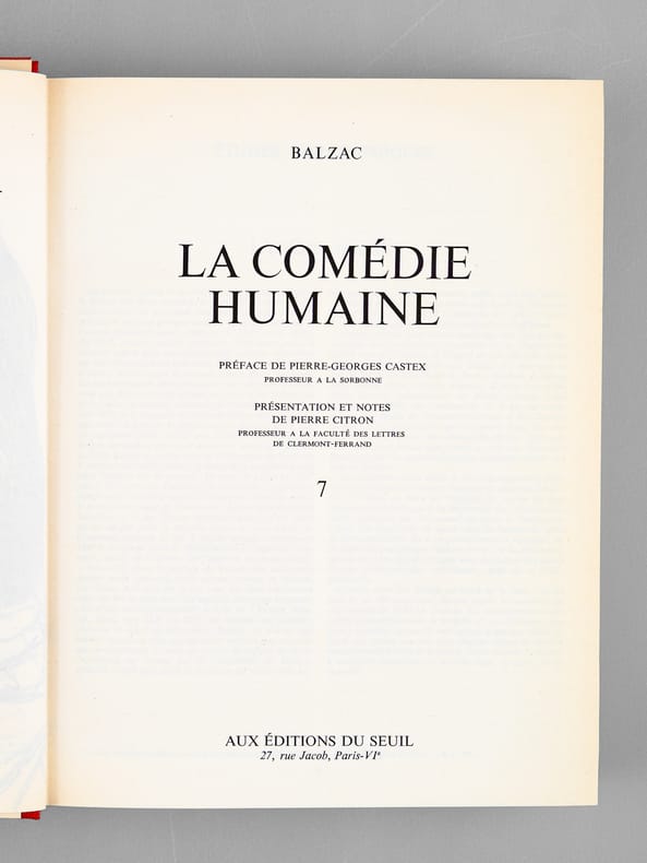 Présentations et notes de Pierre Citron, 7 vol. grand in-8 reliure pleine toile rouge éditeur sous jaquette rhodoïde transparente, coll. l'Intégrale, Aux Editions du Seuil, Paris, 1966, 600 à 700 pp. par vol. avec 80 à 90 illustrations