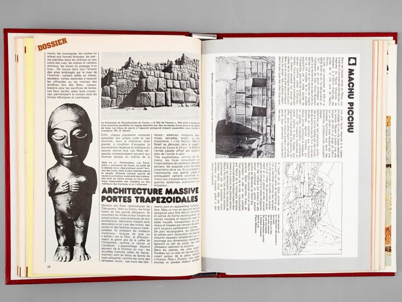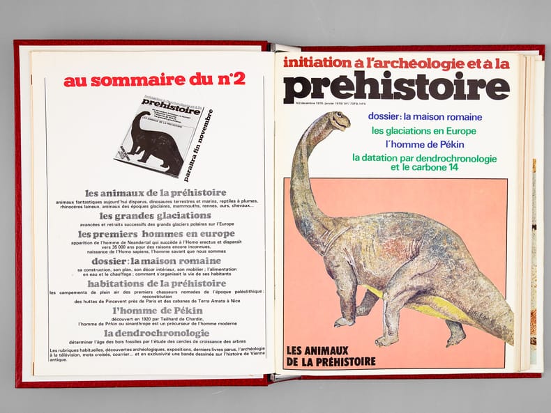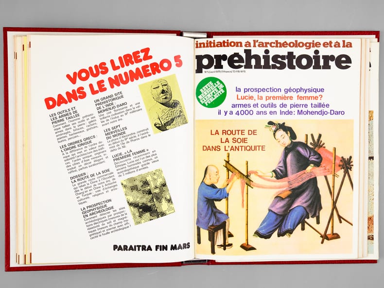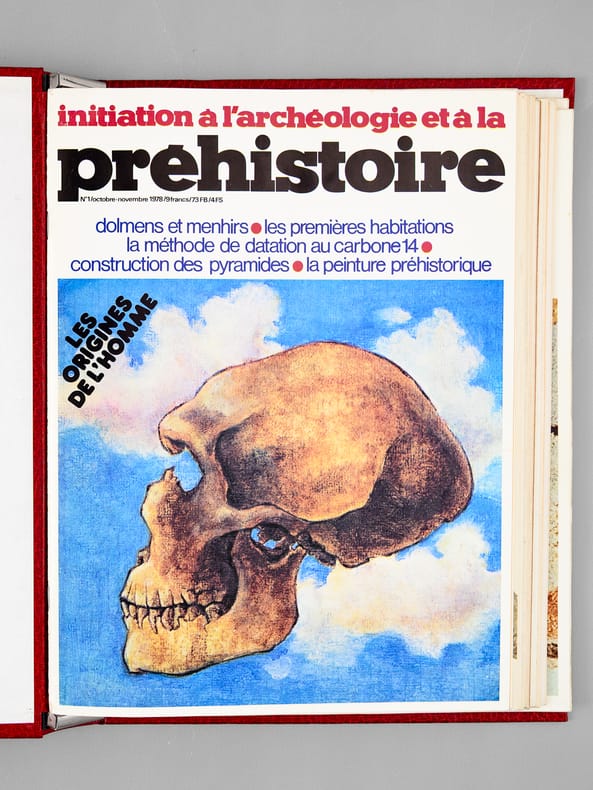 40 numéros in-4 br. sous 4 classeurs mobiles de l'éditeur (32 numéros sous classeurs et 8 volants), "initiation à l'archéologie et à la préhistoire". Revue Préhistoire et Archéologie, 1978, 1979, 1980, 1981, 1982