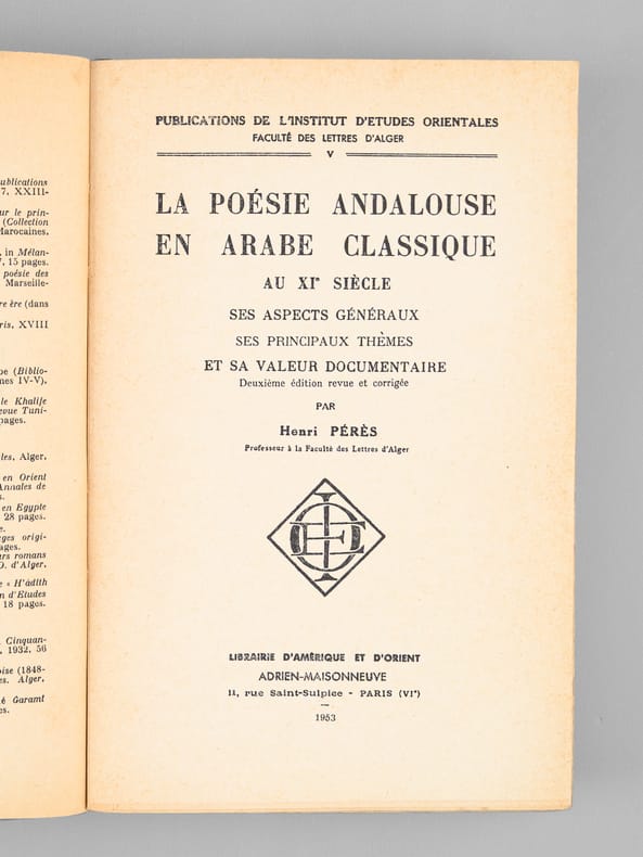 Deuxième édition revue et corrigée, 1 vol. in-8 br., Publications de l'Institut d'Etudes Orientales, Faculté des Lettres d'Alger, Librairie d'Amérique et d'Orient, Adrien-Maisonneuve, Paris, 1953, 541 pp.