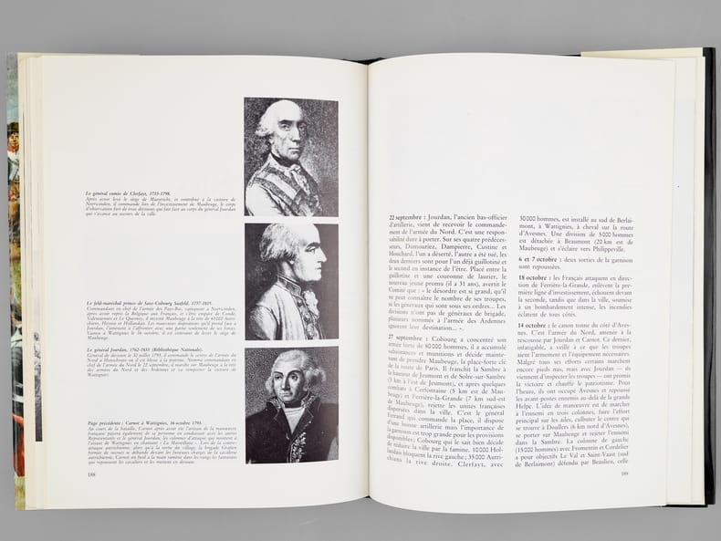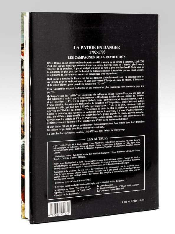 Lavauzelle "Les grands moments de notre histoire" 1987, in-4 (29 x 21,5 cm) relié skyvertex vert de l'éditeur sous jaquette illustrée, 224 p. (bel état ; non réédité) Illustrations NB et couleurs à toutes les pages. Valmy, Jemmapes, Hondschoote et autres batailles, du beau travail d'histoire militaire, avec la riche iconographie qui caractérise cette collection.