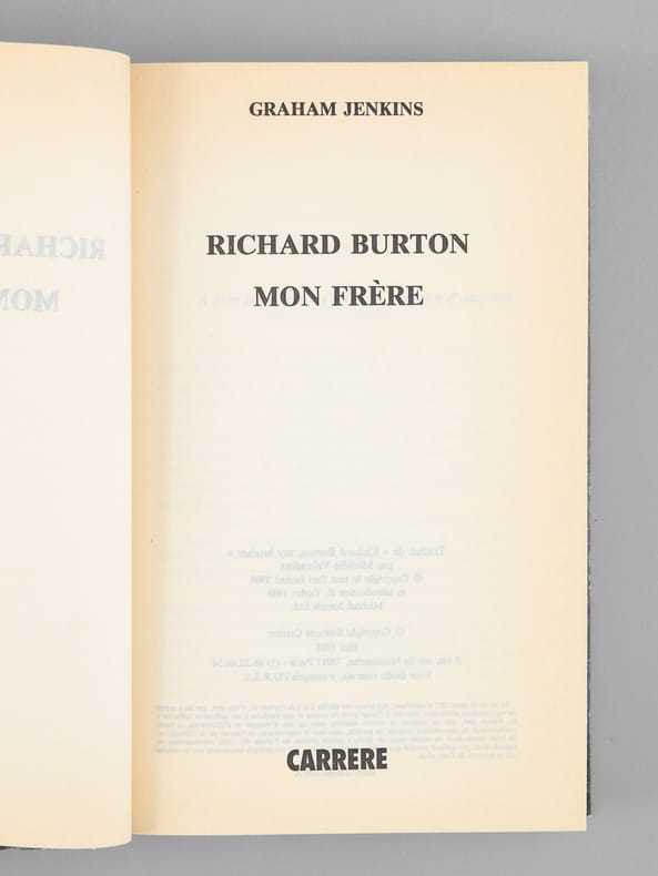 Traduction française peu commune de cet ouvrage importante, biographie de Richard Burton (1925-1984) par son frère Graham Jenkins (1927-2015). Etat très satisfaisant (couv. lég. frottée)