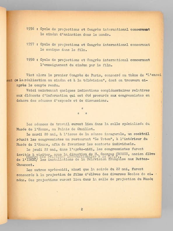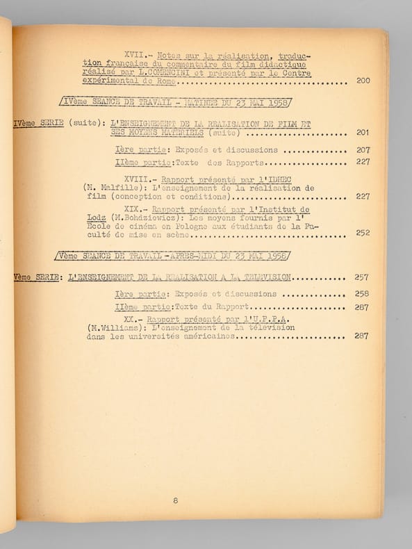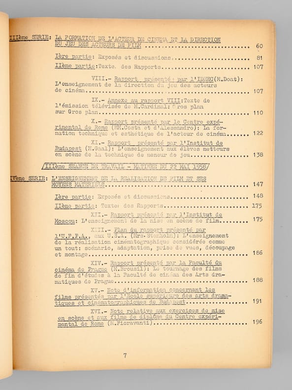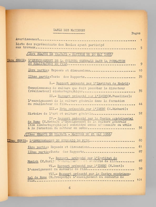 1 vol. fort in-4 dactylographié, Centre International de liaison des Ecoles de Cinéma et de Télévision, 1958, 292 pp.