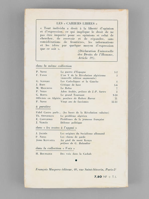 1 vol. in-8 br., Cahiers libres n°14, François Maspero, 15 janvier 1961, 231 pp.