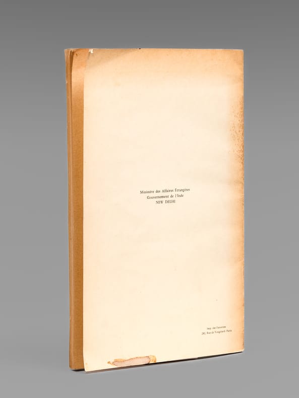 1 vol. in-8 br., Ministère des Affaires Etrangères, Gouvernement de l'Inde, New Delhi, Imp. des Favorites, Paris, 1962, 111 pp.