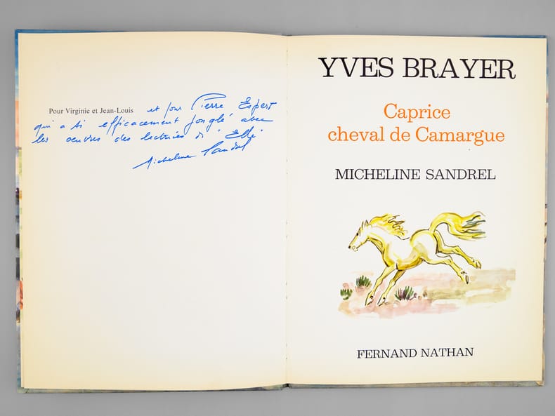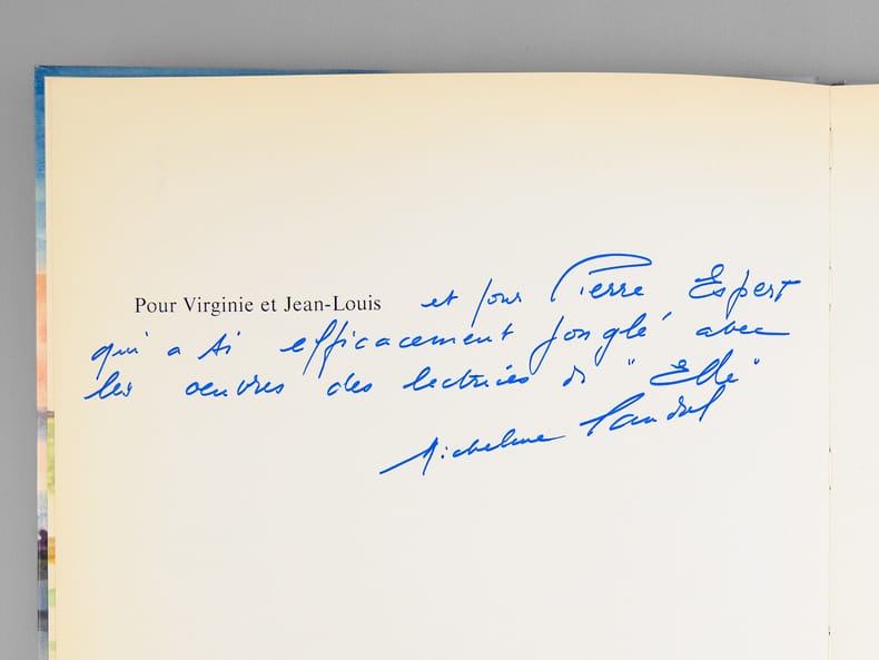 Bel envoi de Micheline Sandrel "pour Pierre Espert qui a si efficacement jonglé avec les oeuvres des lectrices de "Elle"".