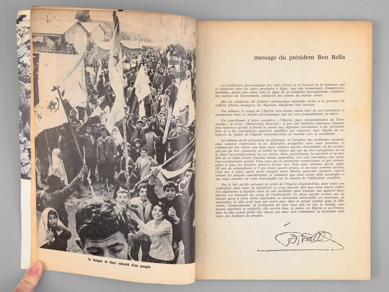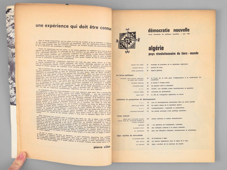 Revue mensuelle créée en 1947 par le Parti communiste français, "Démocratie nouvelle" cessera de paraître en 1968 à la suite du Printemps de Prague. Le rédacteur en chef-adjoint Paul Noirot poursuivit à partie des années 60 la collaboration avec le FLN, voyageant en Algérie ou dans la Chine de Mao. Bon exemplaire de ce numéro désormais peu commun.