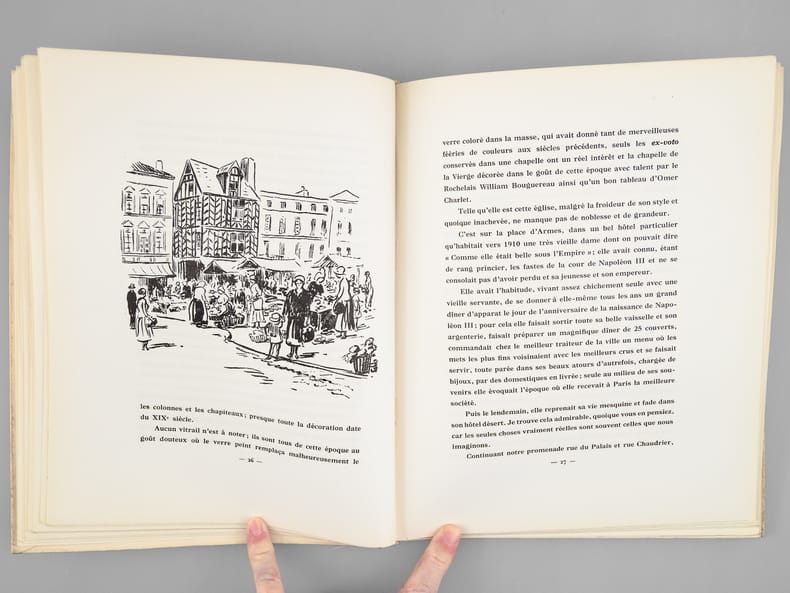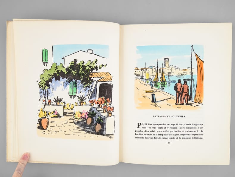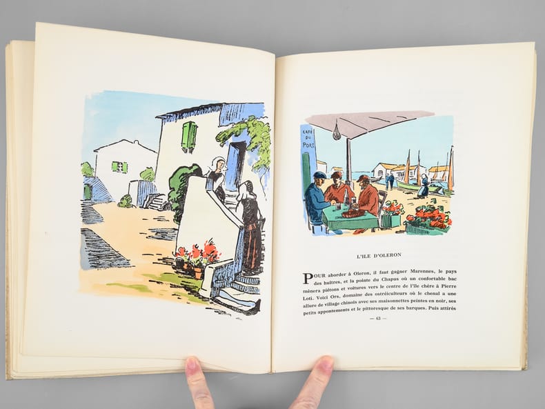 Illustrations de l'auteur, un des 320 exemplaires vélins avec 12 illustrations en couleurs et les autres illustrations en noir numérotés de 766 à 1085 (n° 870), 1 vol. in-4 br., A la Rose des Vents, La Rochelle, 1958, 127 pp. et 3 ff.