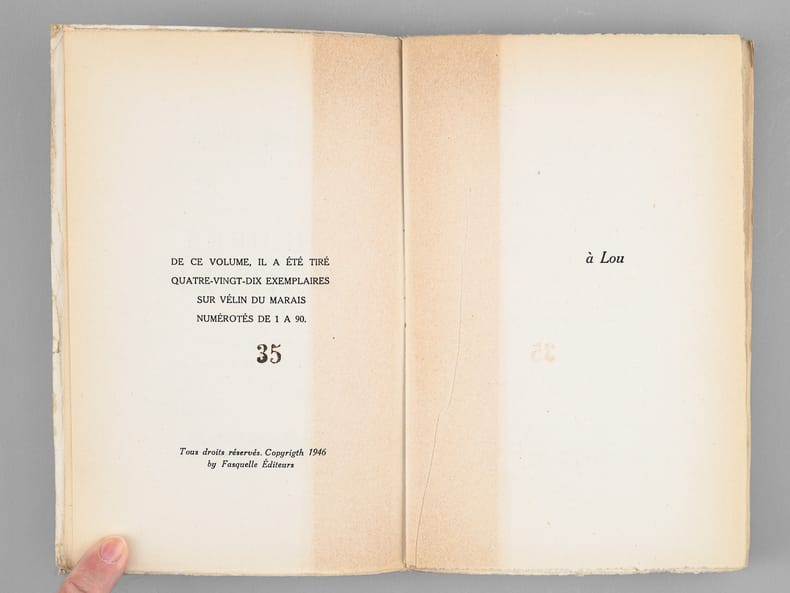Un des 90 exemplaires sur vélin du marais numérotés (n° 35), 1 vol. in-12 br., Fasquelle, Paris, 1946, 151 pp.