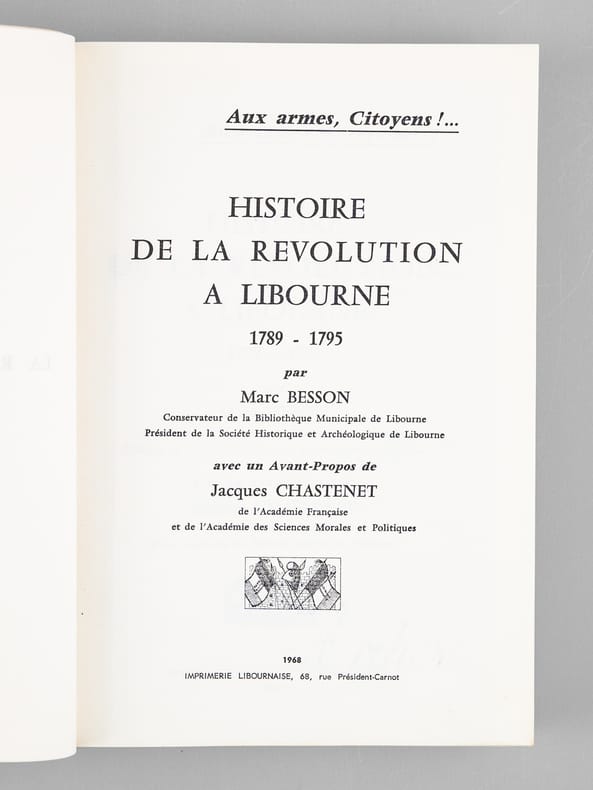 Un des 220 exemplaires bibliophiles sur papier B.F.K. de Rives numérotés (n° 81), avec un avant -propos de Jacques Chastenet, 1 vol. in-8 br., Imprimerie Libournaise, Libourne, 1968, 386 pp.