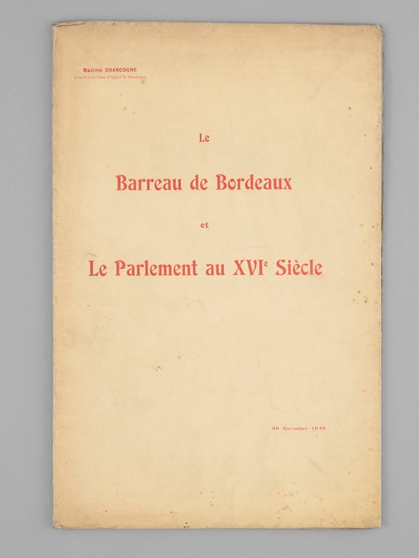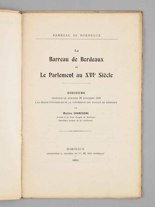 1 brochure in-8, Imprimerie L. Delbrel et Cie, Bordeaux, 1911, 32 pp.
