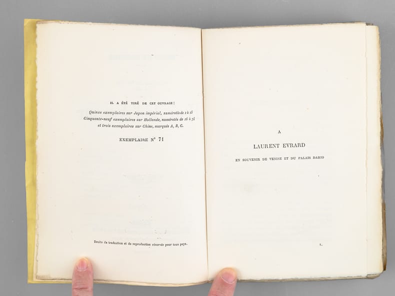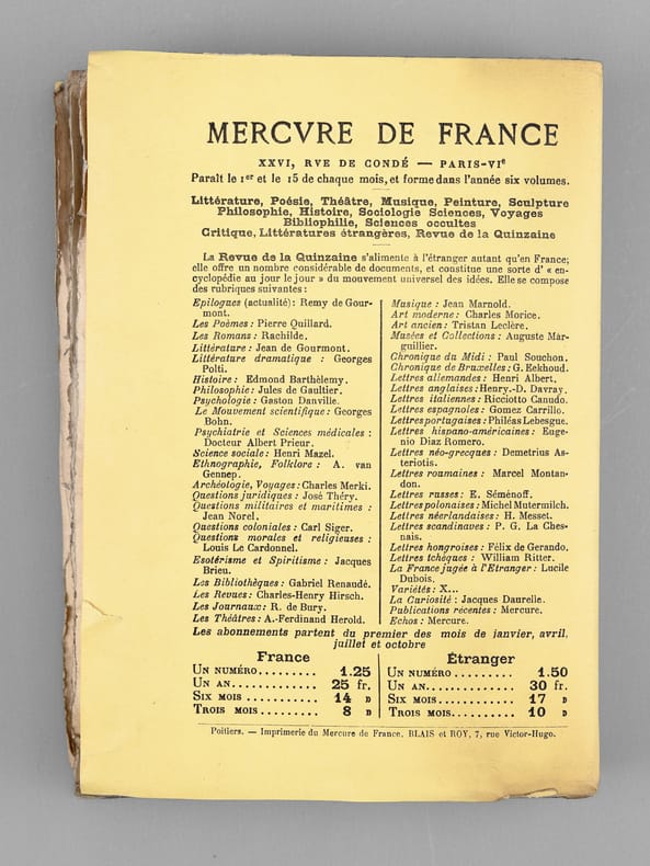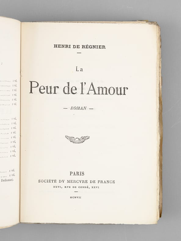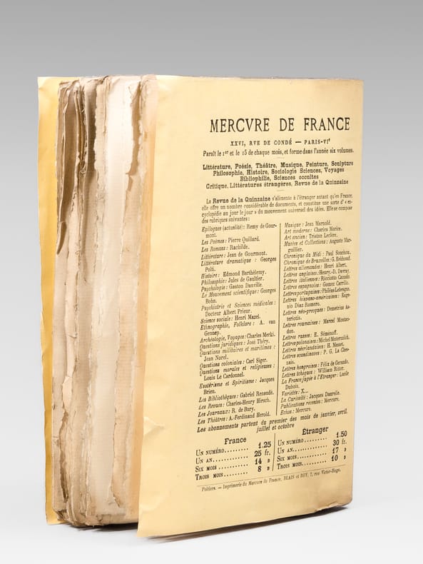 Un des 59 exemplaires sur Hollande numérotés de 16 à 74 (n° 71), 1 vol. in-12 br., Société du Mercure de France, Paris, 1907, 308 pp.