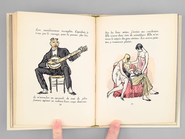 1925 Paris, Mornay, sans date (1925), peitt in 8° relié demi-basane caramel, dos lisse titre en long sur une étiquette de maroquin rouge, couverture illustrée en couleurs conservée, 55 pages