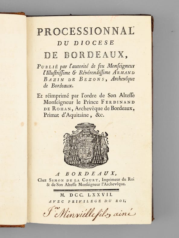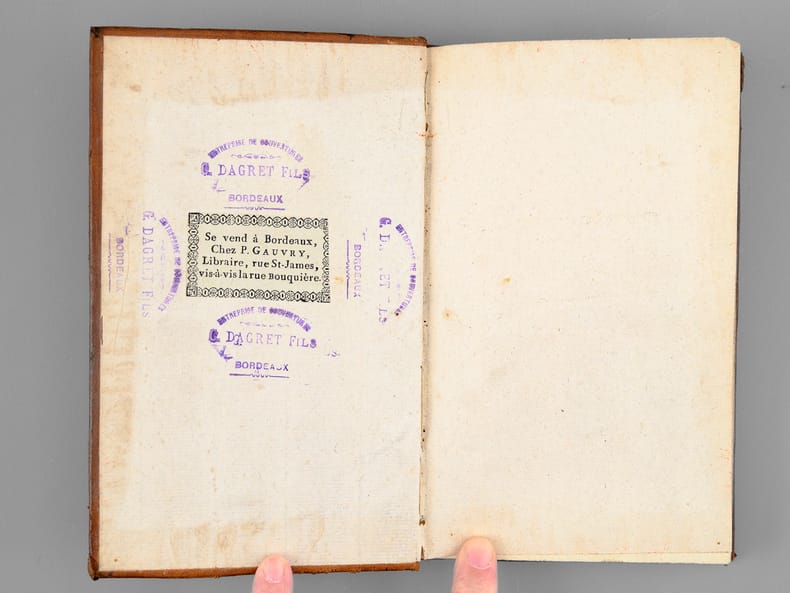 1 vol. in-8 reliure pleine basane marbrée, dos lisse orné, Chez Simon de La Court, Bordeaux, 1777, 3 ff., 152 pp.