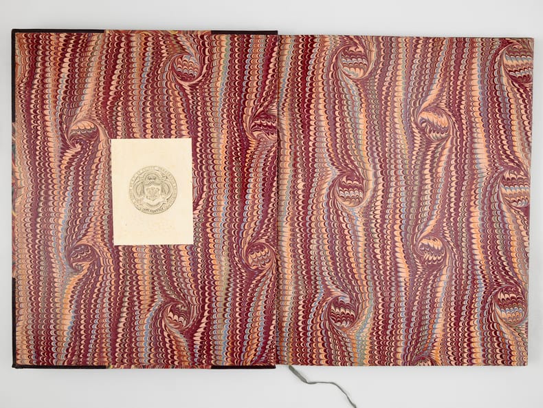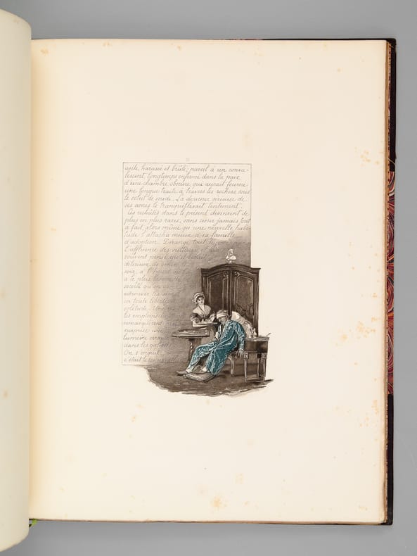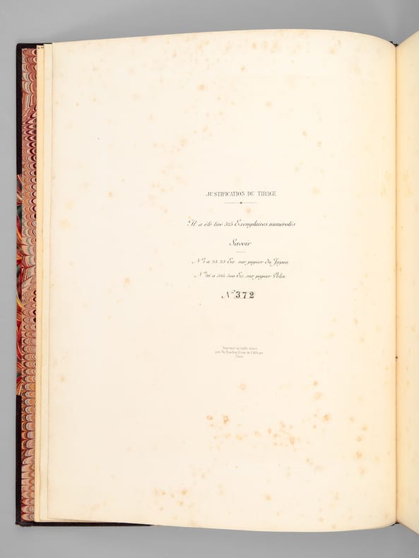Illustrations de M. le Comte de l'Aigle, un des 500 exemplaires sur vélin numérotés (n° 372), après 25 Japon, 1 vol. in-folio reliure demi-maroquin à coins brun, dos à 5 nerfs, couvertures conservées, reliure signée de David, Librairie Artistique H. Launette et Cie, Paris, 1889, 29 pp.