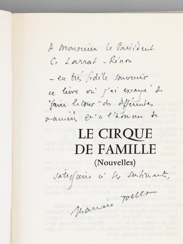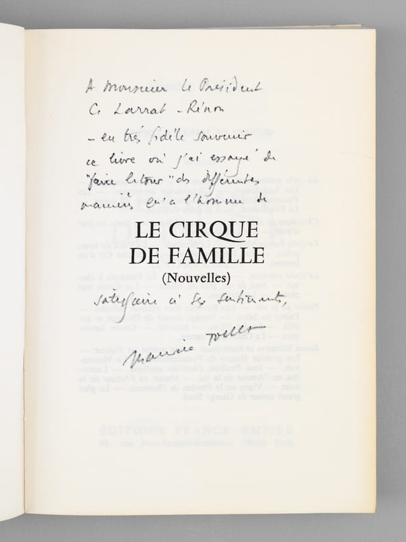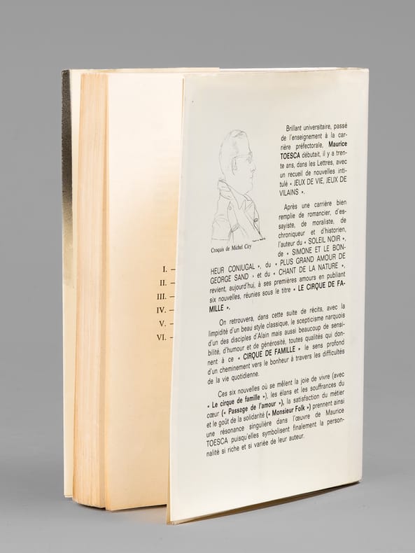 Bel envoi de Maurice Toesca : "En très fidèle souvenir ce livre où j'ai essayé de faire le tour des différentes manières qu'à l'homme de satisfaire à ses sentiments". Bon état (couv. très lég. frottée).