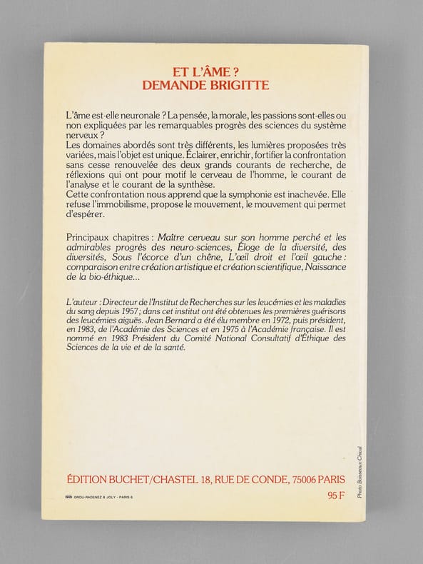 Envoi ms. de l'auteur, 1 vol. in-8 br., Buchet Chastel, Paris, 1987, 228 pp.