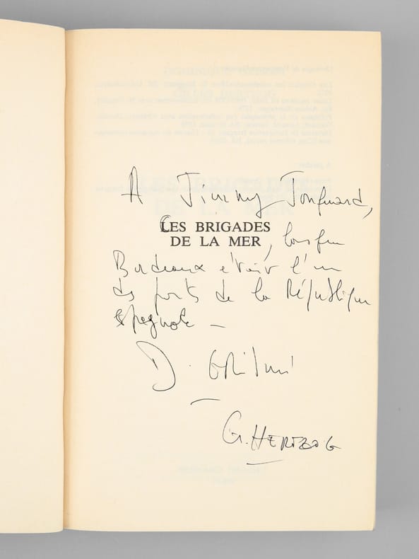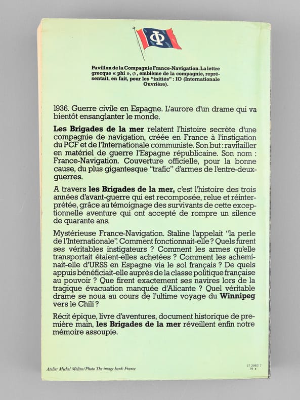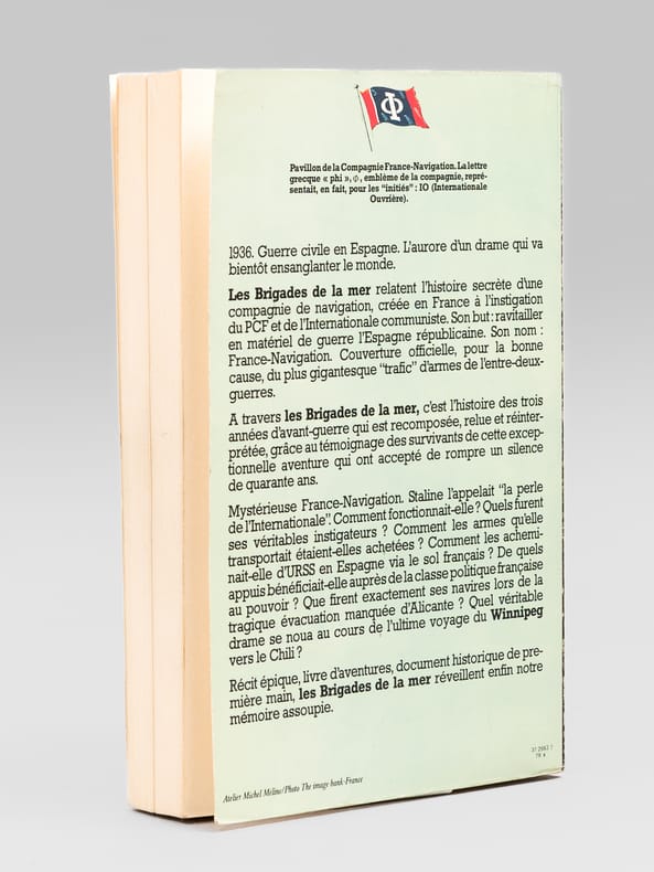 Bel envoi des auteurs, "Ces Brigades de la Mer, lorsque Bordeaux était l'un des ports de la République espagnole". Bon état pour cet ouvrage relatant l'histoire secrète d'une compagnie de navigation, créée en France à l'instigation du PCF et de l'Internationale communiste. Son but: ravitailler en matériel de guerre l'Espagne républicaine. Son nom: France-Navigation. Couverture officielle - pour la bonne cause - du plus gigantesque trafic d'armes de l'entre-deux-guerres.