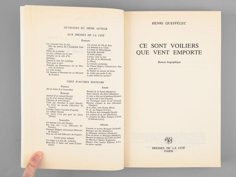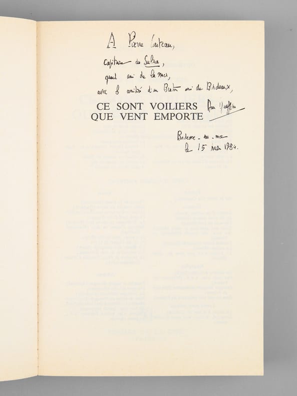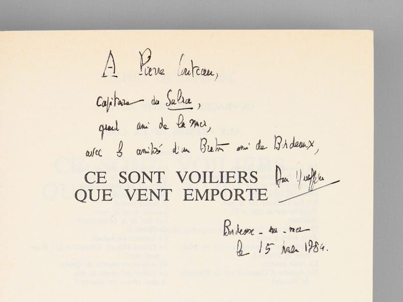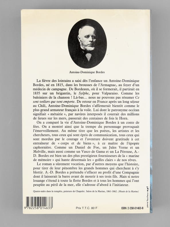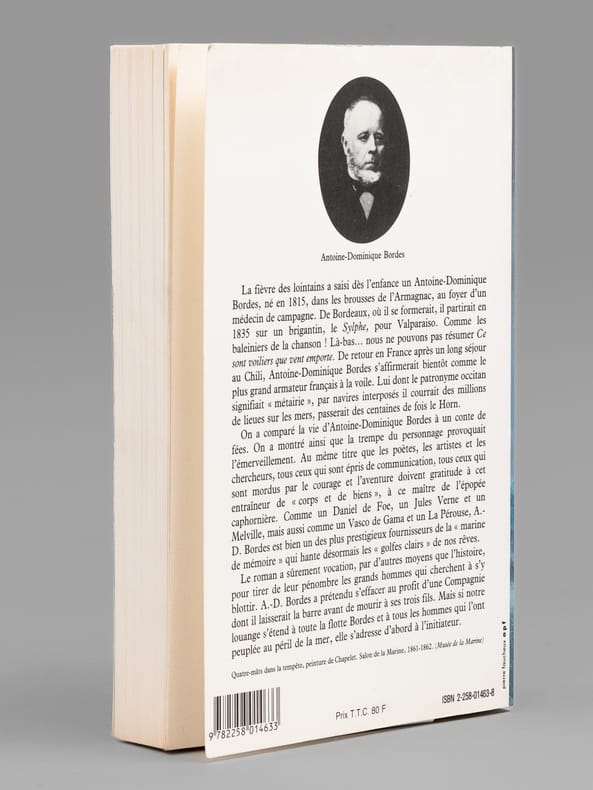 Bel envoi d'Henri Quéffelec. Ce "roman biographique" évoque la vie d'Antoine-Dominique Bordes, le plus grand armateur à la voile de son temps. Bon exemplaire