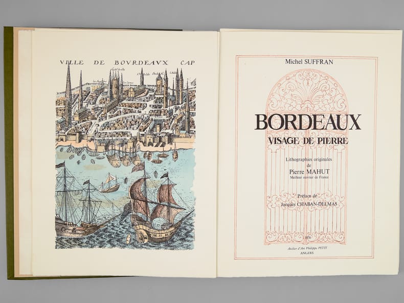 Envoi ms. de l'auteur, Lithographies originales de Pierre Mahut, Préface de Jacques Chaban-Delmas, exemplaire numéroté sur vélin des Papeteries de Lana (n° 563), 1 vol. in-4 en feuilles sous chemise, chemise reliée demi-toile et étui, Atelier d'Art Philippe Petit, Angers, 1978, 103 pp.