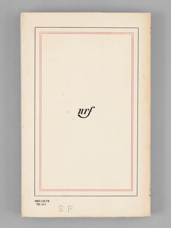 Envoi ms. de l'auteur, Exemplaire du service de presse marqué S.P., 1 vol. petit in-8 br., NRF, Gallimard, Paris, 1970, 191 pp.