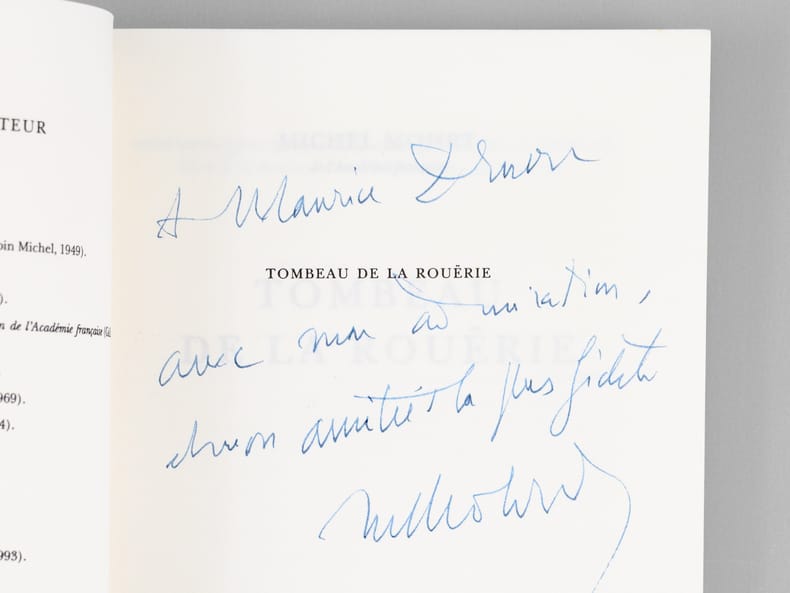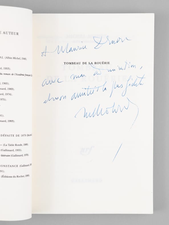 L'exemplaire est enrichi d'un bel envoi "à Maurice Druon, avec mon admiration, et mon amitié la plus fidèle". Romancier, écrivain et historien de la littérature, Michel Mohrt (1914-2011) fut élu en 1985 membre de l'Académie française au Fauteuil 33, le fauteuil de Voltaire, où il succède à Marcel Brion. Bon état (légères rouss. sur tranches). Bel essai en hommage au marquis de La Rouërie.