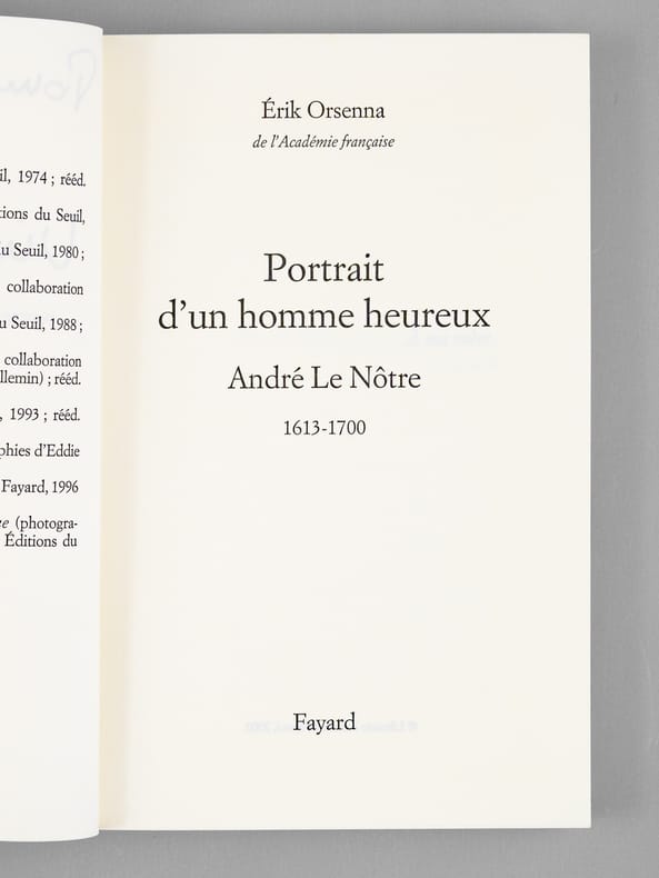 L'exemplaire est enrichi d'un bel envoi "Pour Maurice Druon, Vive le Roy ! Fidèlement. Erik". L'écrivain Erik Orsenna a été élu en 1998 à l'Académie Française. Bon état (légères rouss. sur tranche en tête, petit frott. à un mors en queue). Comme à son habitude, Maurice Druon a plié l'angle de 2 feuillets qui avaient retenu son attention.