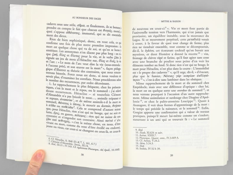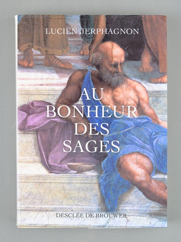 Bel envoi de Lucien Jerphagnon "A Maurice Druon, au maître, et s'il le permet, à l'ami. Respectueusement, et très fidèlement". Comme à son habitude, Maurice Druon a plié l'angle de 5 feuillets qui avaient plus particulièrement retenu son attention (avec une marque au stylo en marge de 4 feuillets).