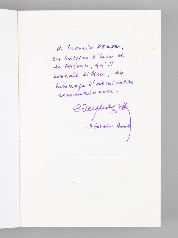 Bel envoi de Lucien Jerphagnon "A Maurice Druon, ces histoires d'hier et de toujours, qu'il connaît si bien, en hommage d'admirative reconnaissance". Bon état (lég. rouss. sur tranches)
