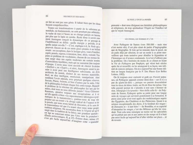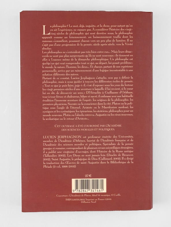 Histoire de la pensée antique et médiévale. Tableau chronologique, schéma des relations entre les écoles, situation des lieux philosophiques, index onomastique, Envoi ms. de l'auteur, 1 vol. in-8 br., Tallandier, Paris, 2004, 575 pp.