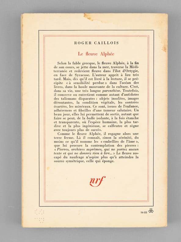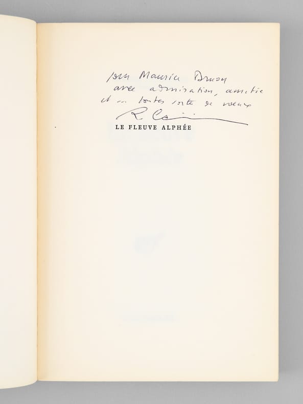 Envoi de Roger Caillois "Pour Maurice Druon, avec admiration, amitié, et... toutes sortes de voeux". Roger Caillois (1913-1978) avait été est élu à l'Académie française en 1971, au fauteuil 3, succédant ainsi à Jérôme Carcopino et précédant Marguerite Yourcenar. Belle provenance pour cet exemplaire de son dernier ouvrage, dédicacé au futur secrétaire perpétuel de l'Académie Française, Maurice Druon, qui a légèrement annoté certains passages au crayon. Etat très satisfaisant (petite mouill. sur couv., bon exemplaire par ailleurs).