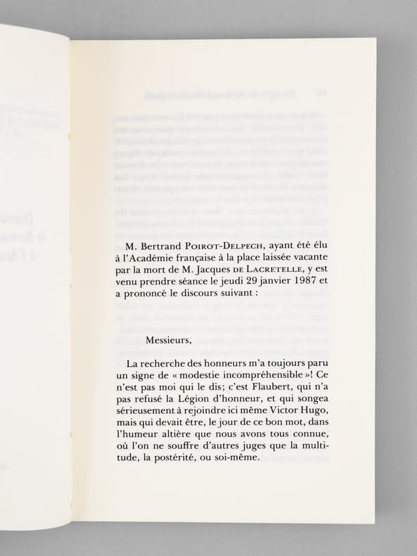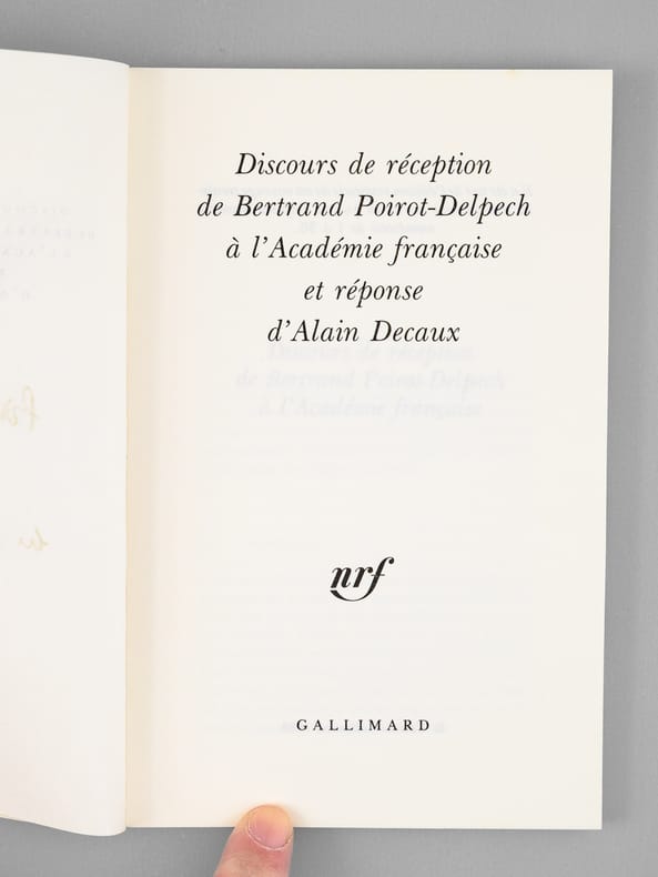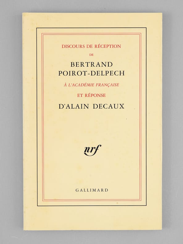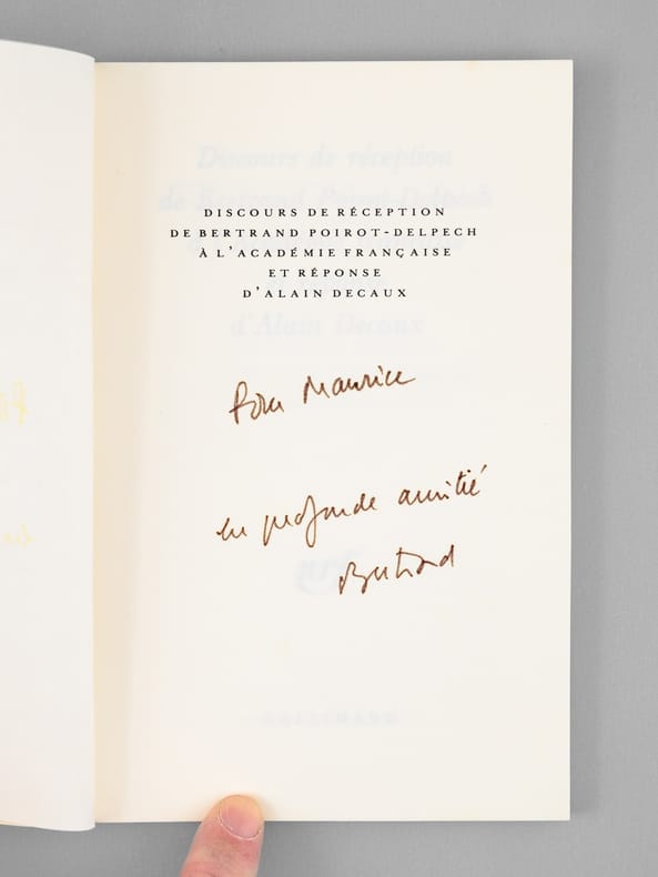Envoi autographe signé de Bertand Poirot-Delpech "Pour Maurice, en profonde amitié". Superbe provenance pour cet exemplaire du tirage ordinaire (après 36 exemplaires sur vélin pur fil), venant de la bibliothèque de Maurice Druon, Secrétaire Perpétuel de l'Académie Française de 1985 à 1999. Bon exemplaire